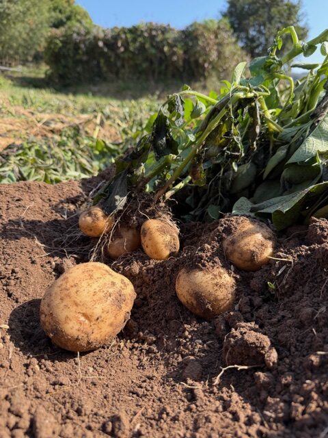 天気にも恵まれ、子ども達は、のびのびと芋掘りとじゃがいも掘りを行いました。子ども達からたくさんお話し聞いてください。 -