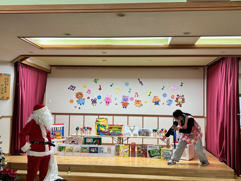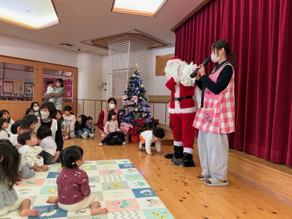 子ども達が待ちに待ったクリスマス会。先生達は「箱から出てくるマジック」を行いました。おひさま組は、ハンドベル奏を披露しました。 クリスマス由来の話もありました。 サンタさんの登場に興奮した子、びっくりした子など、様々な表情が見られました。 ... -