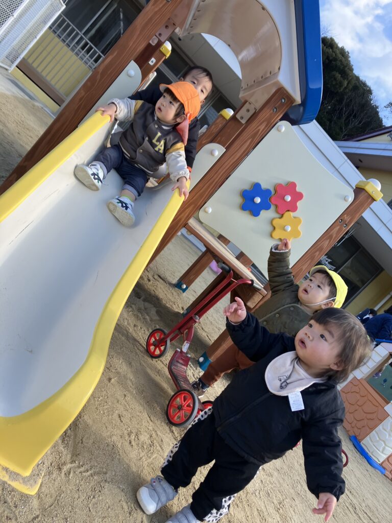 スタイかわいいね! クレヨンでお絵かき中! 磁石のおもちゃで遊んでます。 ボール入れるの楽しいね! ボールコロコロ。 木のおもちゃ楽しいね。 滑り台楽しいね。 お弁当美味しいね。 あっ!ピーポーピーポー聞こえるよ! 順番に並んで滑るんだよ~ カレンダーの制作。スタンプをポンポン 好きな色を選んでお絵描き 積み木遊び あそこになにかいる!? さあ、砂遊び始めようかな。 ボルダリングに挑戦! この絵本も好きなんだ〜! トントン・・・。 お買い物いってきます! 集中してあそんでいます。 お外はポカポカいい天気! お散歩にいったよ。 園舎裏へ秋を見つけにいったよ。 おやつタイム! 上手に歩けるよ! トンネルくぐるの楽しいね! カートでお散歩! クレヨンで制作してます。 お買い物行ってきます。 園庭ではいろんな遊びをして楽しんでいます。砂場は人気です! 水遊び! 砂遊び楽しい! 全員集合 大好きな砂遊び! みんなでゴロゴロクルンクルン ケチャップいかがですか~ キッチン遊び。 砂遊び! いってきま~す! 木のおもちゃはお気に入り! カートに乗って出発! がんばれ、がんばれ! にこにこ。 おもちゃどれにしようかな。 だるまさん 絵本って楽しいね お誕生日おめでとうございます。 お誕生日おめでとうございます。 お誕生日おめでとうございます。 お姉さん達と3ショット! 滑り台に挑戦! 上手に立つことができたよ。 お気に入りのおもちゃ。 はいポーズ!にっこり笑顔。 一緒に遊ぼうよ ゴロゴロ楽しいよ~! 2025年度