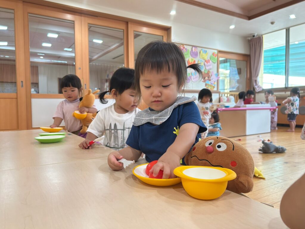 はい、どうぞ。 おままごと遊び。 絵本大好き。 ぬり絵楽しんでます。 タンバリンしました! ハウスで遊んでます。 上手に積み重ねてます。 マット遊び。 お絵描き上手! 水遊び。 線路づくり。 積み重なるかな。 エビがいたよ! お家つくってます。 お砂どうぞ ぶらんぶらん 電車遊び ぎゅー。 みんな集中してます。 形を合わせて… 電車が落ちちゃった! 給食おいしいね! お山できたよ! 川ができたよ~ お集りの様子。 ポトンっと音がするよ。 高く積めるかな。 お人形さんのお世話してます。 埋もれちゃうよ~ 野菜のお世話。 水遊びを楽しみました! おままごと遊び! シャボン玉楽しい! お絵描きの時間。 お膝の上に乗せてもらったよ。 EnglishDay!! カニを廊下で発見!ケースに入れてもらい観察しました。 カニ見せて~! 色んな形を作れるようになったよ! 給食おいしい! かばんとお布団バック全部自分で分かったよ!かっこいいでしょ。 みんなで仲良くおままごと! 見てみて~帽子! 新聞紙遊び楽しい! お誕生日おめでとうございます。 輪の中で読書! はい、どうぞ 積めるかな。 カンパーイ! 制作中 はい。どうぞ! バケツに砂をたくさん入れて遊んでいます。 お話を楽しそうにしていました。 これ食べていいよ~。 砂場遊び大好きです。 平均台遊び。 ペタペタと集中して貼っています。 シール張り。 おままごと遊び。 クレヨンを使って絵を書いています。 どんな絵が完成するか楽しみですね。 一緒に遊ぼう。 砂遊びは楽しい。 これ、どうやって遊ぶのかな? ボール遊び! 外はぽかぽか気持ちいよ! みんなでEnglish! 2025年度