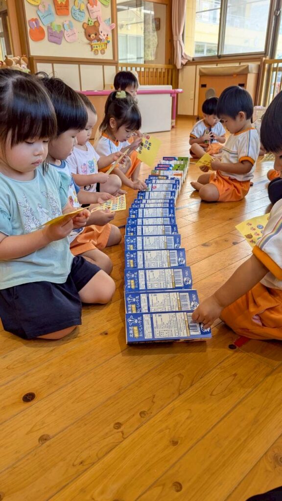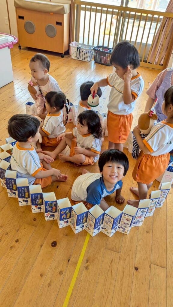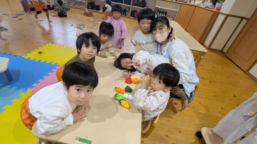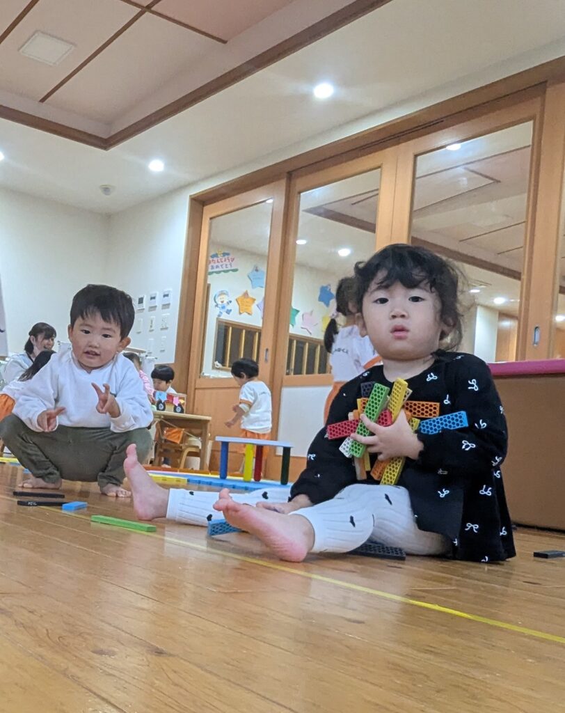 野菜いかがですか。 なに作ろうかな。 高く積み上げよう! お人形さんと遊ぶよ。 一緒に遊ぼう。 スポキッズの体験を行いました。 おにぎり弁当美味しかった! やぎさんまでお散歩にいきました。 牛乳パックを使って遊びました! 室内遊びも楽しんでます。 みんなで輪になってお弁当食べました。 お月見制作! EnglishDay!! ハンバーグどうぞ! お昼寝ですよ~ おままごと遊び 月の制作 ミルク飲みますよ~ 長い線路ができました! ごはんできましたよ! がたんごとん、がたんごとん 赤ちゃんのお世話 おひさま組に遊びにいったよ。 お昼寝の時間ですよ~ 顔にもシール貼っちゃった! タングラム遊び。 はじめてワークをしたよ。 ボタンの練習してます! おままごと遊び! ビオブロック遊び。 リズム遊び! カニの観察。 水遊びをしました! 絵本読みますよ! 新聞ファッションショー! カニ捕まえた! 今日はいい天気!裸足で遊んでみよう! これ何かな? シャボン玉だ! 砂の中は少し冷たくて気持ちいい! 少しずつ高くなってきました。 高くできたよ! 運動会の応援 テラスでお弁当① テラスでお弁当② テラスでお弁当③ 相撲が始まりました、はっけよーいのこった。 交代で相撲を取って遊びました。 ホースをマイクにして歌っています。 おままごと遊び。 お並びの練習をしています。 大きい山作るぞー。 スコップで砂をよいしょよいしょ。 2025年度