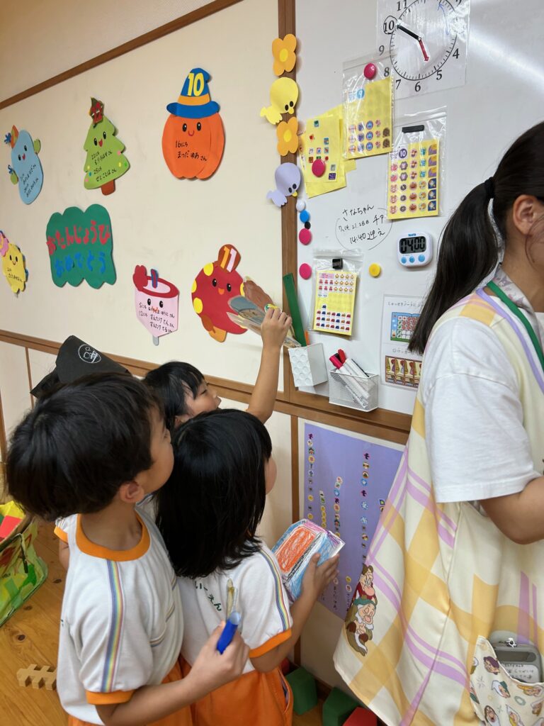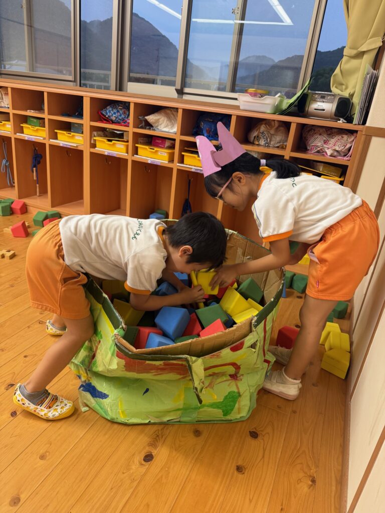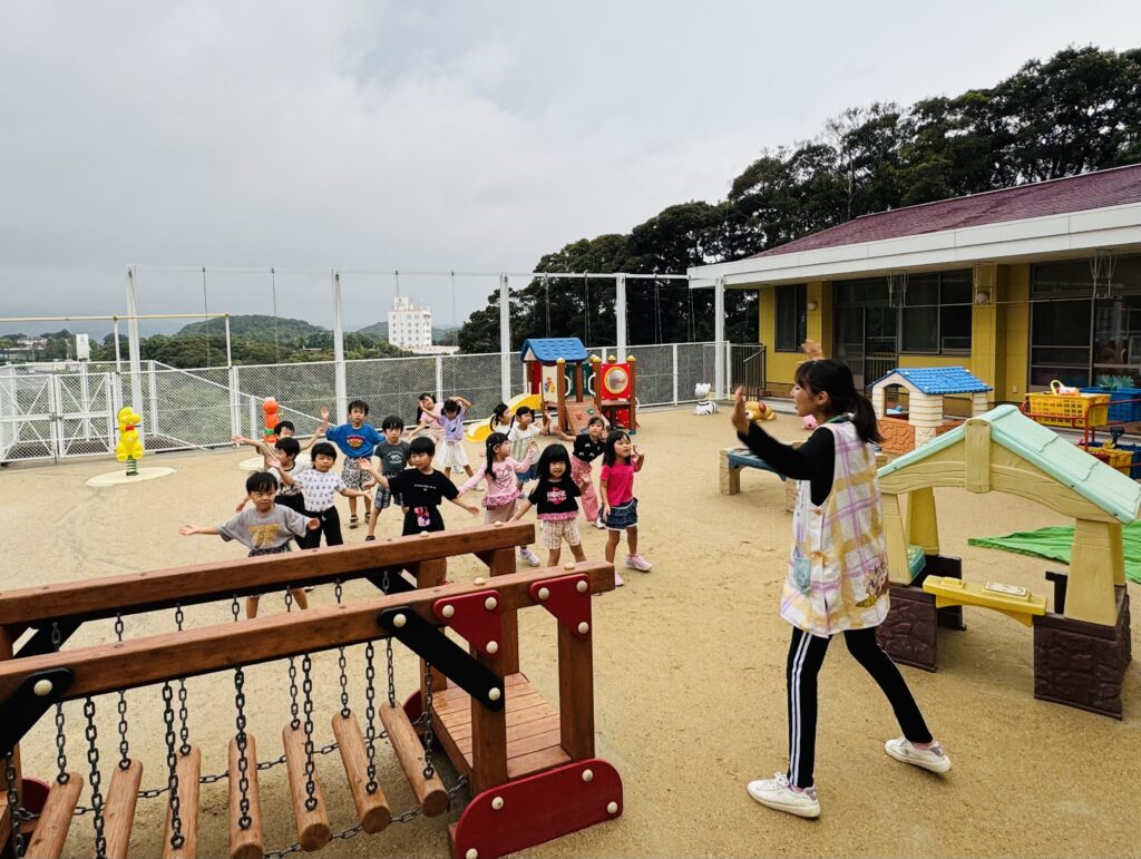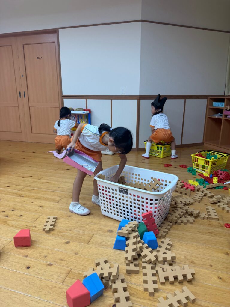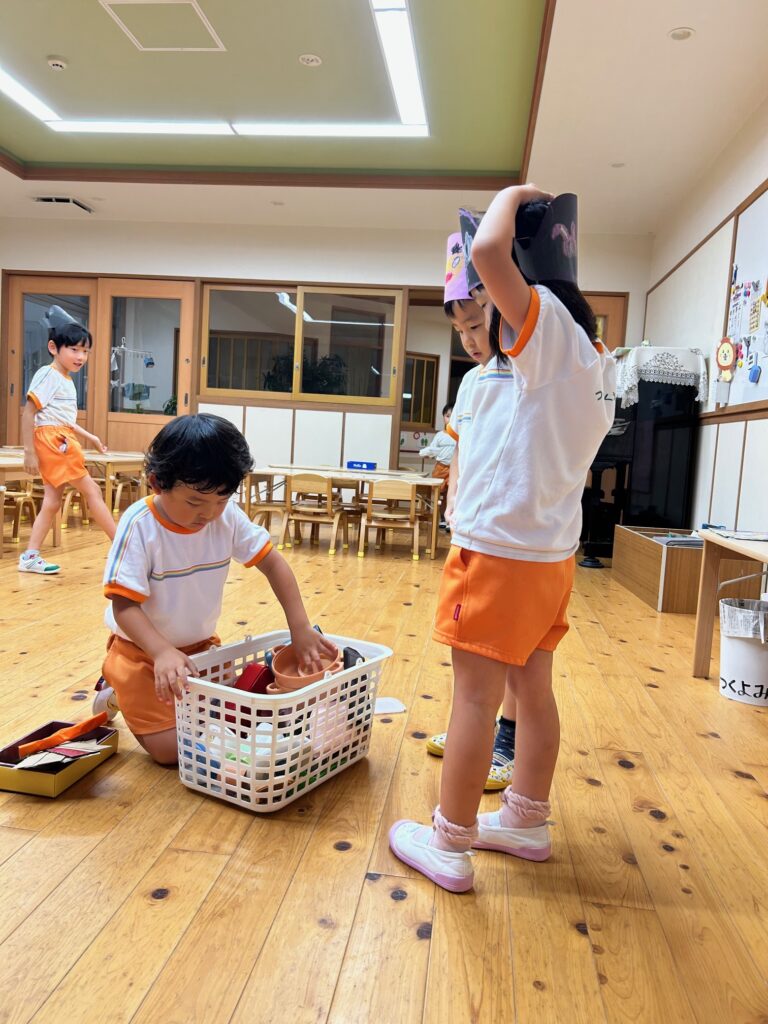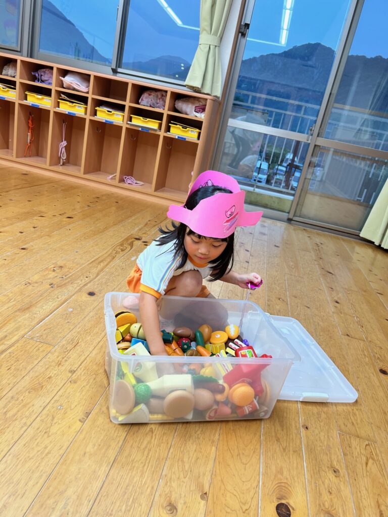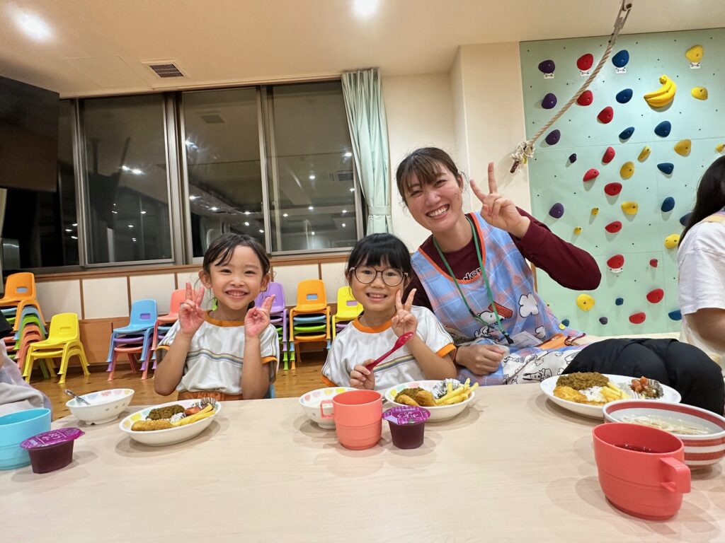 お月見お団子作り! 上手にお団子ができました。 結団式!! 宝探しゲームスタート!2チームに分かれて宝を探します。 特別な宝を発見!! 夜ご飯は、たくさんおかわりしてお腹いっぱい食べました。 ごちそうさまの後、外を見ると雨がやんでいて、今なら花火できる!!と花火観賞をしました。 お月様も顔を出してくれました。花火が終わり園に入ると雷がゴロゴロ・・・花火が見れてよかったね!と話しました。 シャワーを浴びた後にキャンドルサービスをしました。 なんでもがんばれる火、身体が強くなれる火、優しいお兄さん、お姉さんになる火などいろんな火を一人一人もらいました。最後に火遊びはしませんと約束もしてます。 おやすみなさい。 2日目の朝はお散歩に行きました。 朝の体操 朝ごはんを食べました。 解散式。 おやつタイム。子ども達からたくさんのお話しを聞いてください。 お泊まり保育(おひさま組)