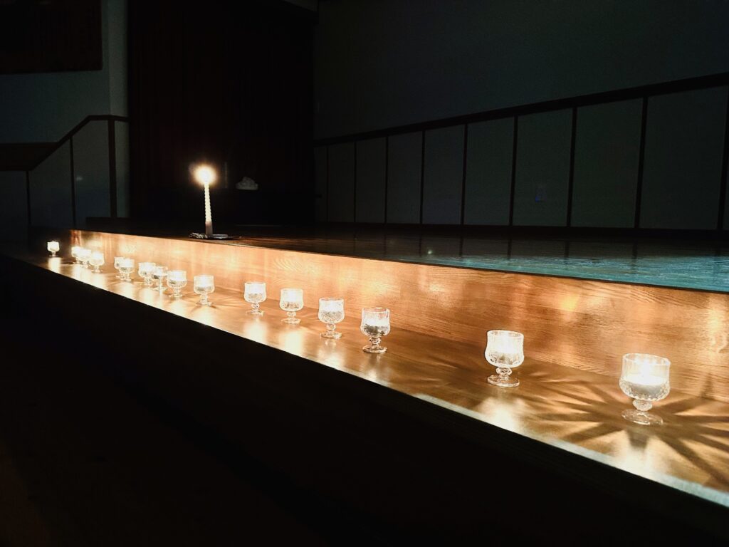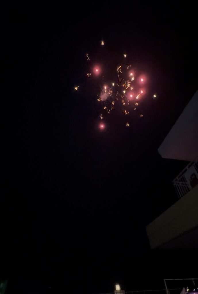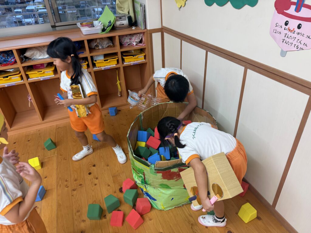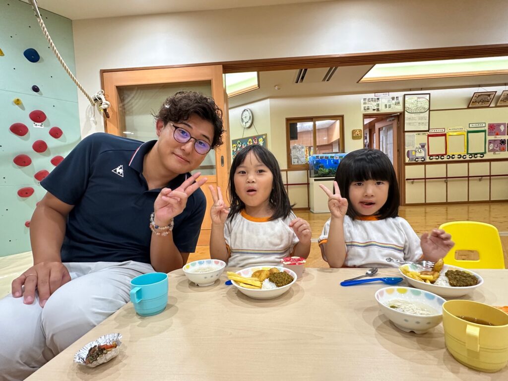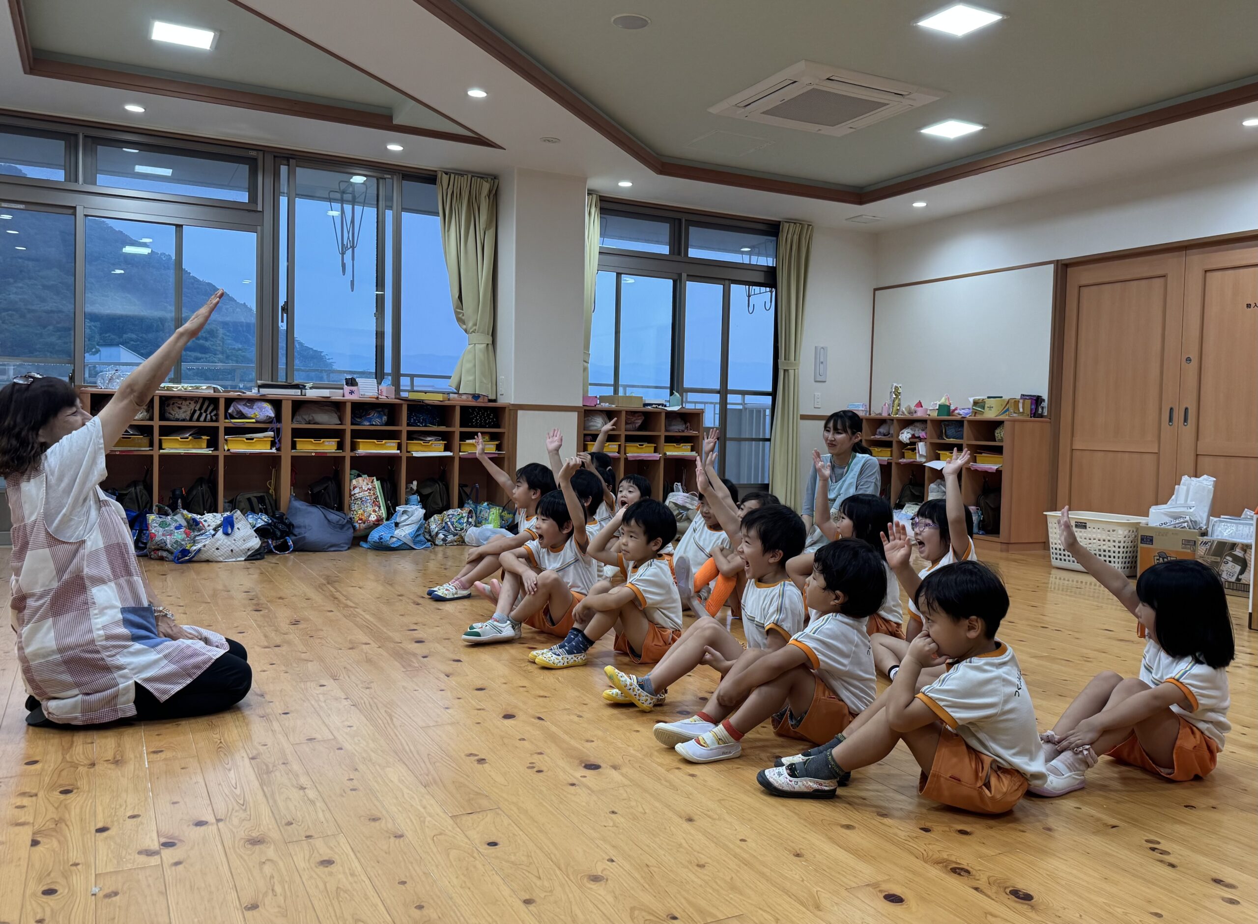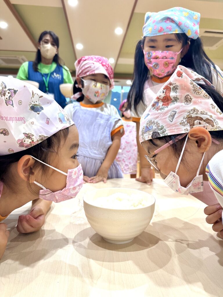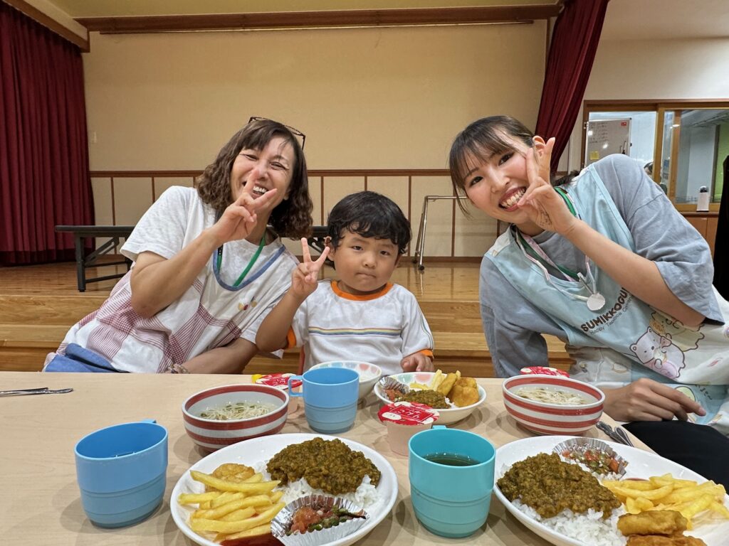 お月見お団子作り! 上手にお団子ができました。 結団式!! 宝探しゲームスタート!2チームに分かれて宝を探します。 特別な宝を発見!! 夜ご飯は、たくさんおかわりしてお腹いっぱい食べました。 ごちそうさまの後、外を見ると雨がやんでいて、今なら花火できる!!と花火観賞をしました。 お月様も顔を出してくれました。花火が終わり園に入ると雷がゴロゴロ・・・花火が見れてよかったね!と話しました。 シャワーを浴びた後にキャンドルサービスをしました。 なんでもがんばれる火、身体が強くなれる火、優しいお兄さん、お姉さんになる火などいろんな火を一人一人もらいました。最後に火遊びはしませんと約束もしてます。 おやすみなさい。 2日目の朝はお散歩に行きました。 朝の体操 朝ごはんを食べました。 解散式。 おやつタイム。子ども達からたくさんのお話しを聞いてください。 お泊まり保育(おひさま組)
