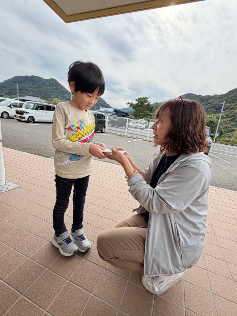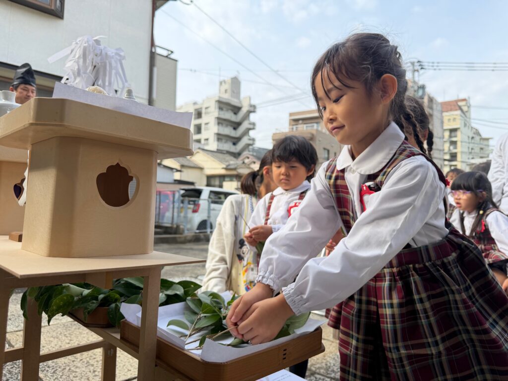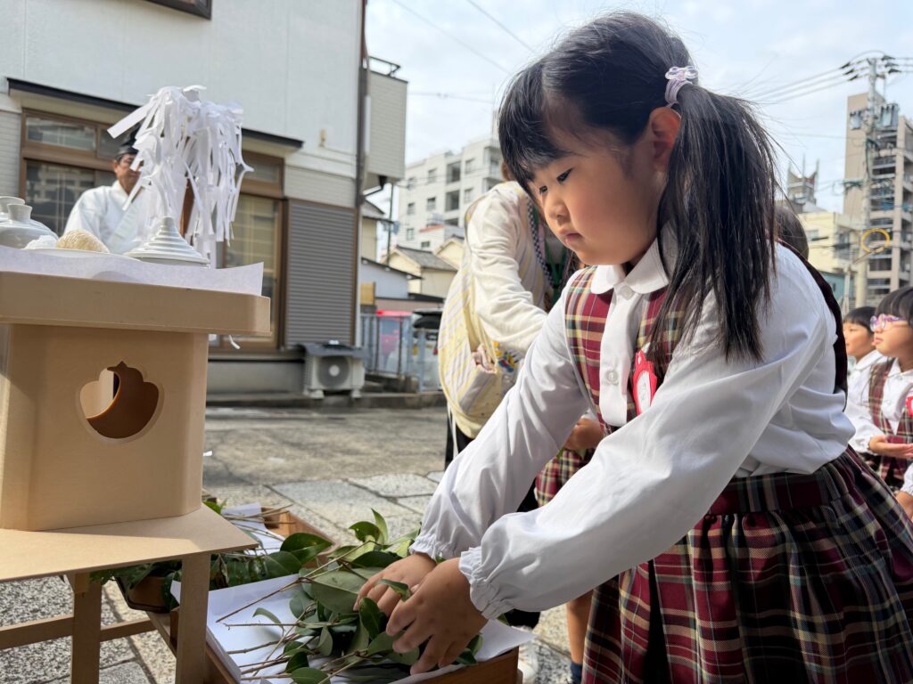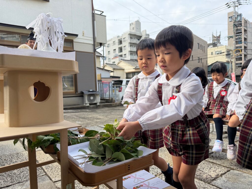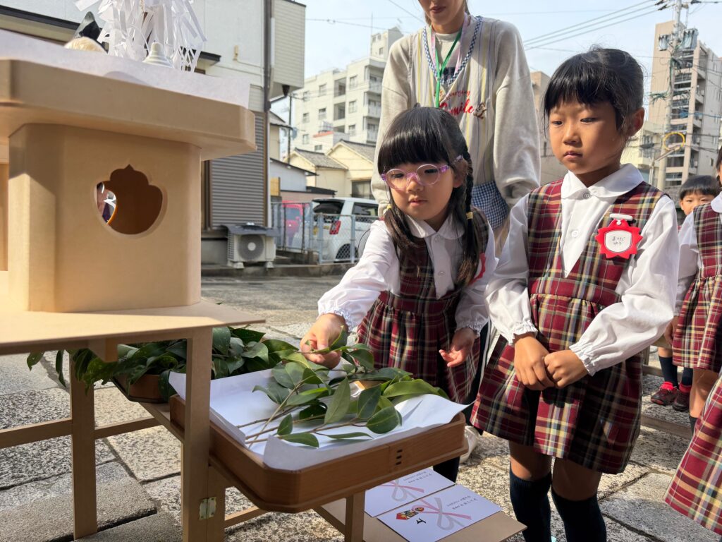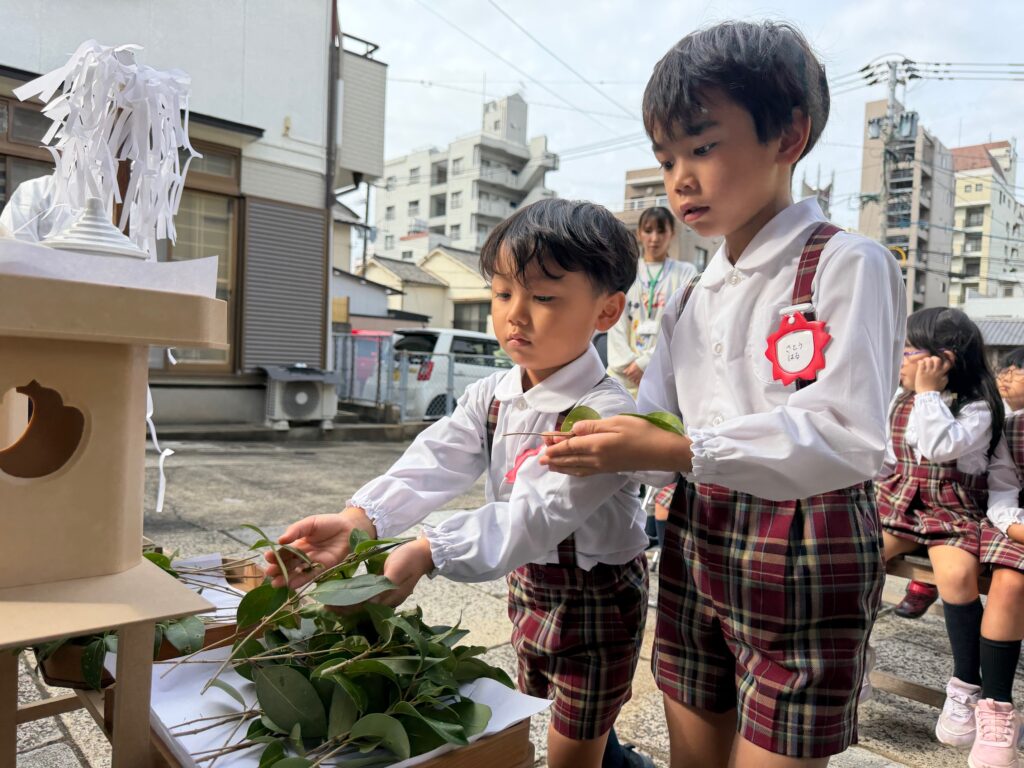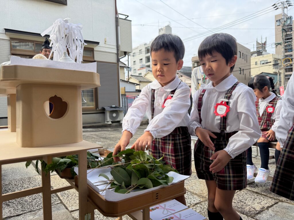 宮地嶽八幡神社へ七五三参りへ行ってきました。奥の鳥居は陶器で作られています。 玉串奉奠 2礼2拍手1礼をして1人ずつ玉串を捧げました。 滞りなく参拝することができました。これまでの子ども達の成長と今後の健康を祈願しました。 子々川郷の熊野神社へ参拝しました。 園長先生より、お守りを頂きました。 参拝後にお買い物体験をしました。 本日、お守りとお買い物体験で購入したおやつを持ち帰っています。ご家庭で今日のお話しをたくさん聞いてみてください。これからも、健康で元気にたくさん遊んで過ごすことができますように。 七五三参り(おひさま組)