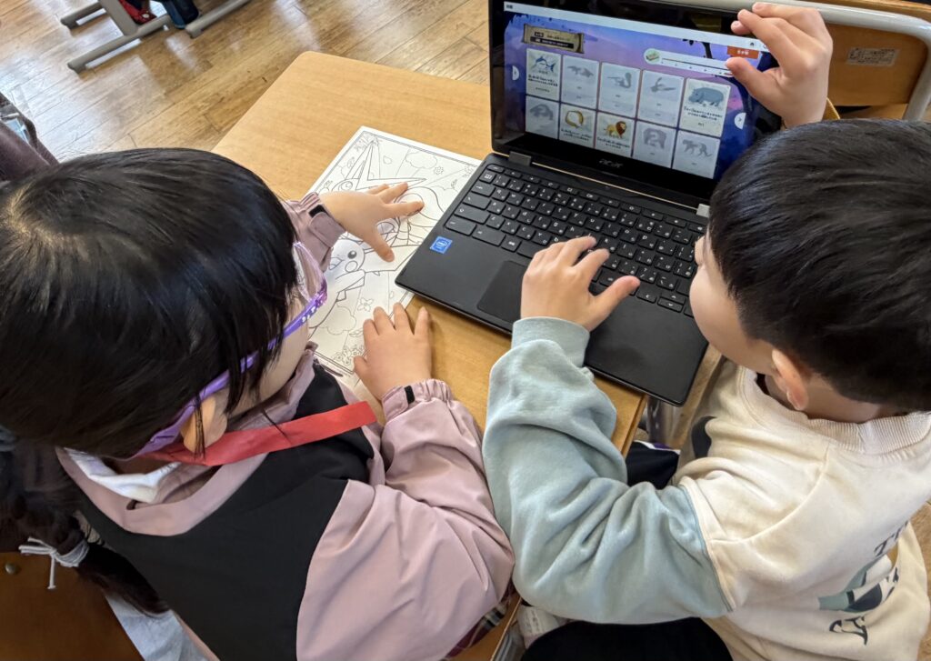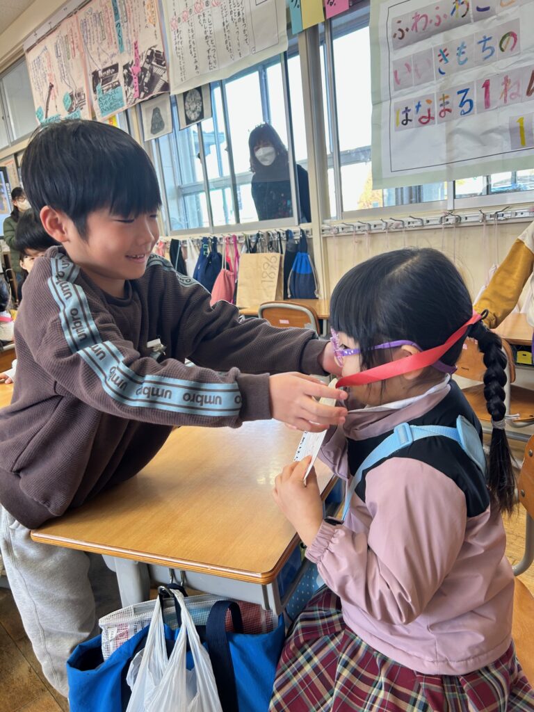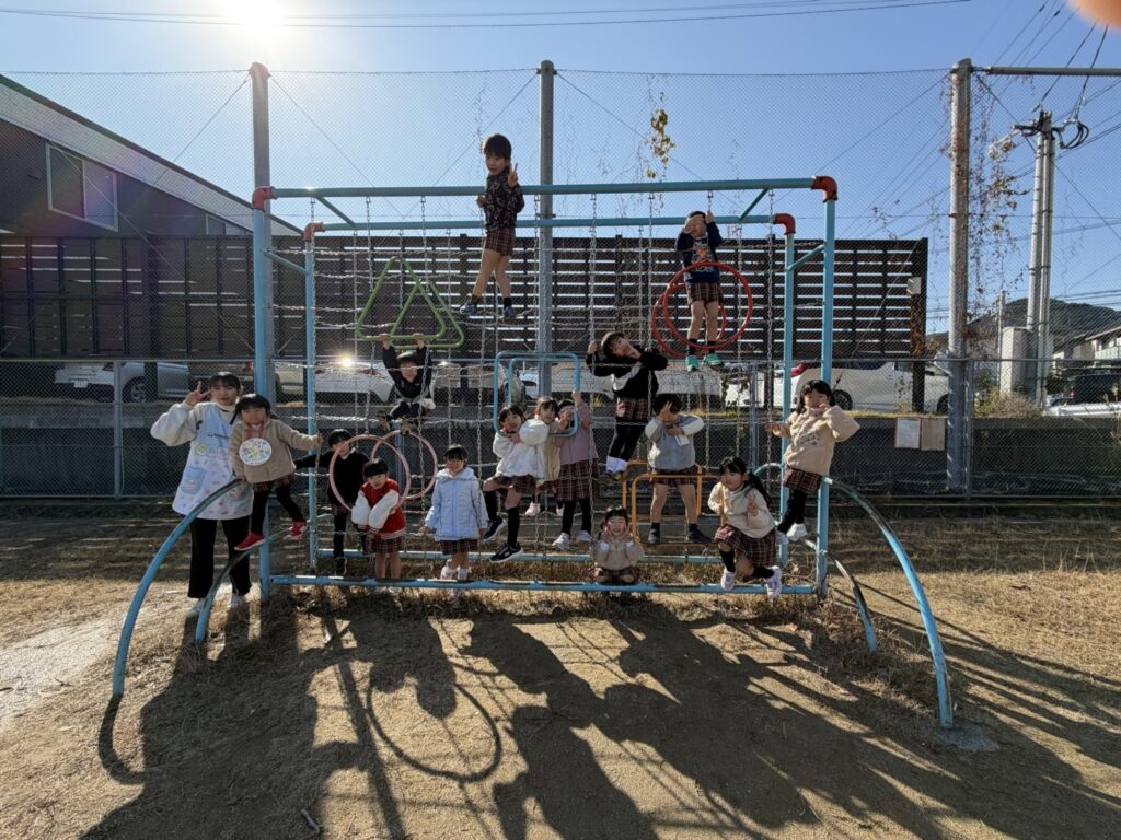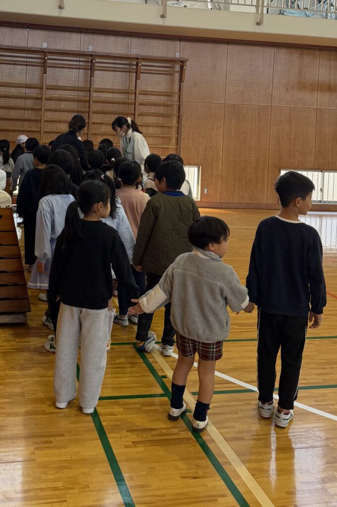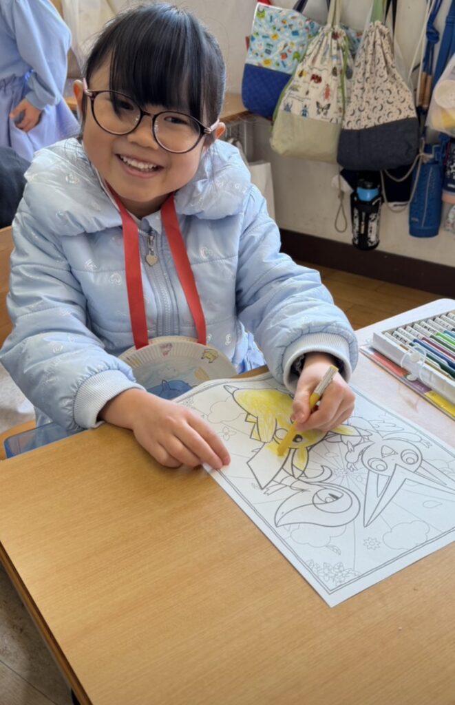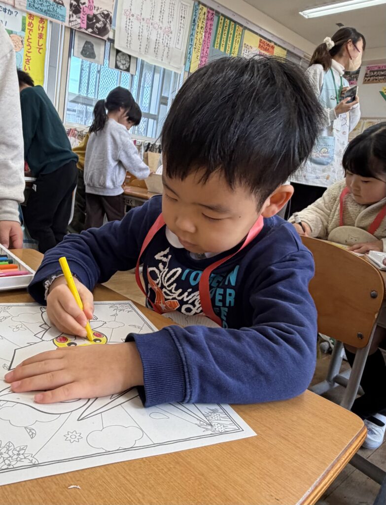 初めての1年生の教室。ドキドキして少し緊張気味です。ペアになって交流活動を行いました。 1人ずつメダルをかけてもらいました。 机でぬりえ・お絵かき体験 ランドセルを背負わせてもらいました。嬉しいね 小学校ではパソコンも使います。 体育館・図書室の見学も行いました。 体育館の倉庫には色々な道具がありました。 帰りのあいさつ 栽培中の立派なブロッコリーがありました。 校庭を使わせていただきました。広い運動場を走って気持ち良かったね。 シーソー上手に乗れたよ! 大きい遊具でハイポーズ!小学校って楽しいね! 小学校へまた行きたい!という声がたくさん聞かれました。お礼の手紙を書いています。また小学校に行って1年1組の皆さんに渡す予定です。 2025 2025年度一覧② 時津北小学校との交流会(おひさま組)