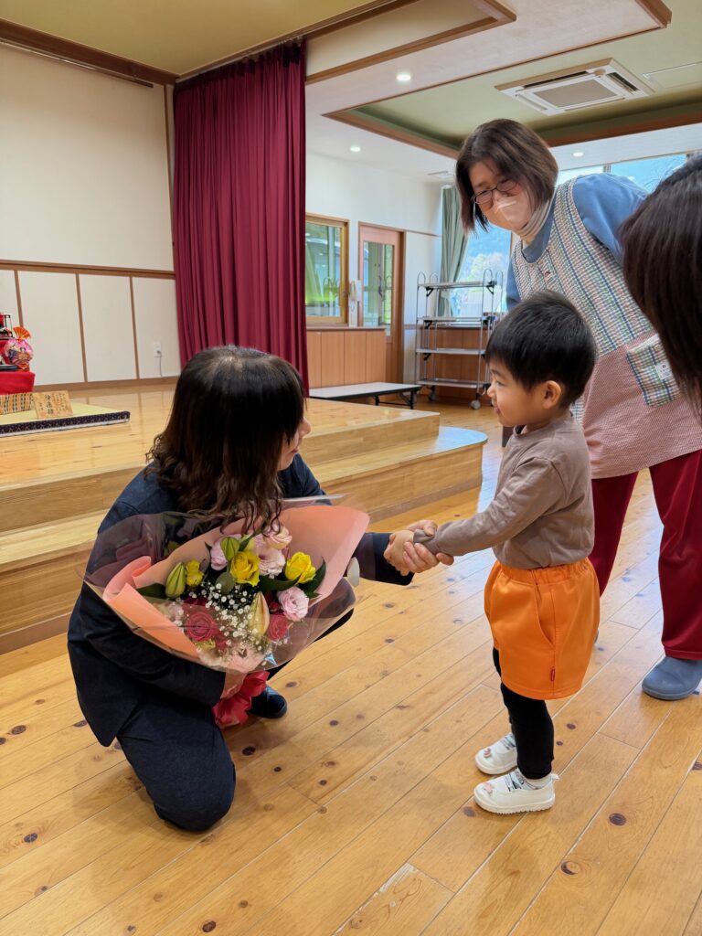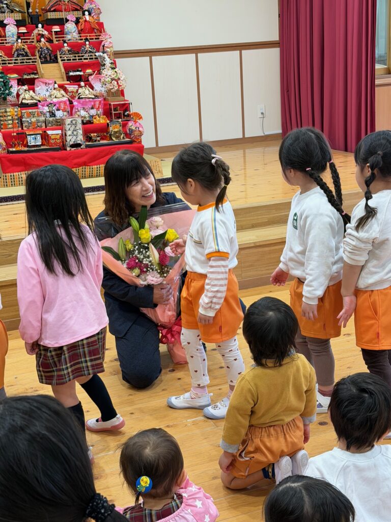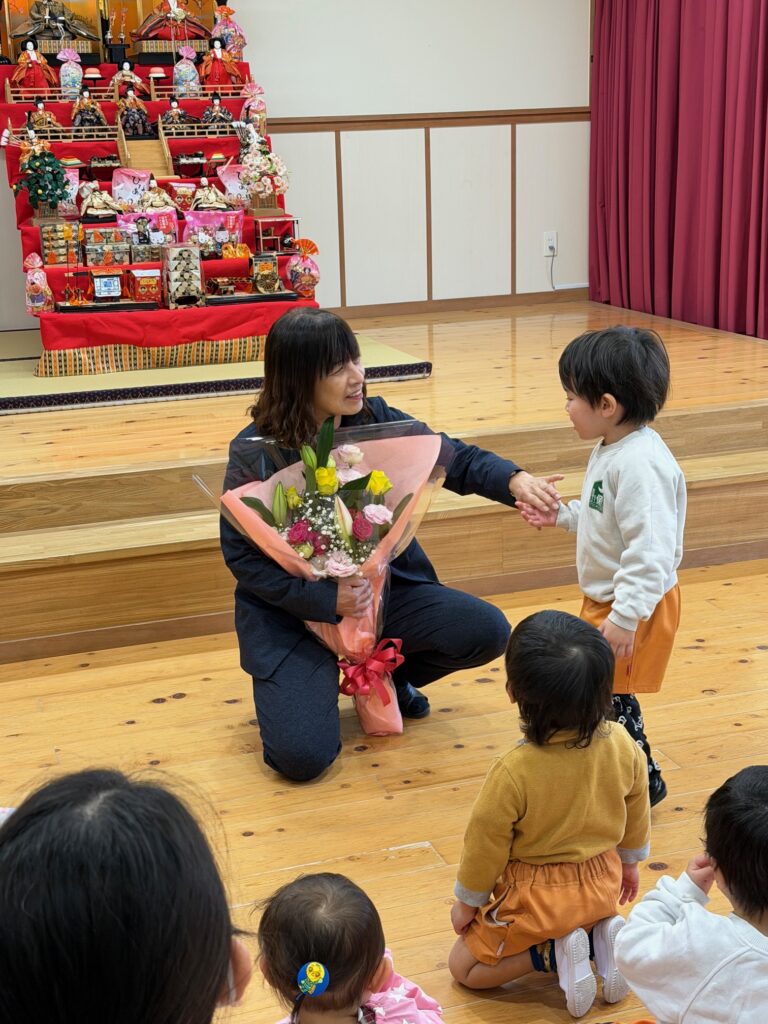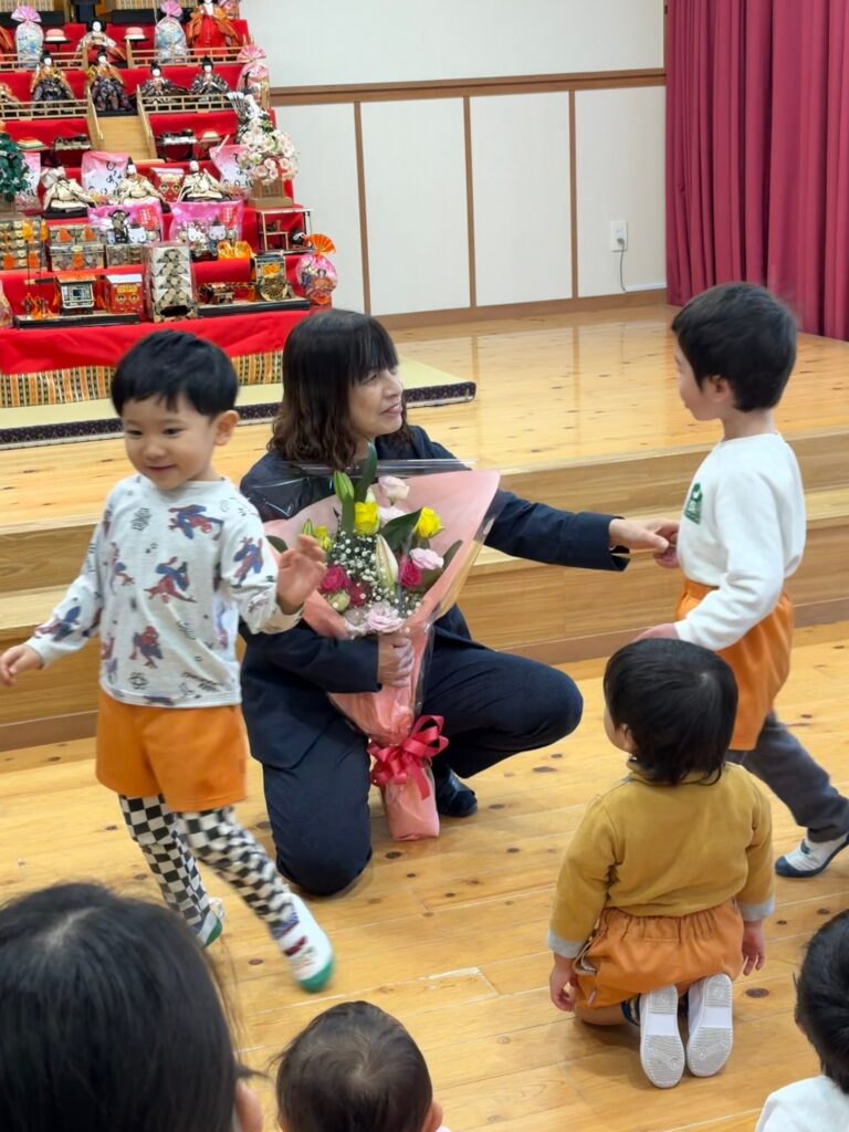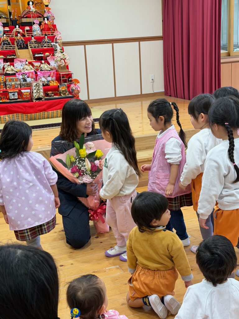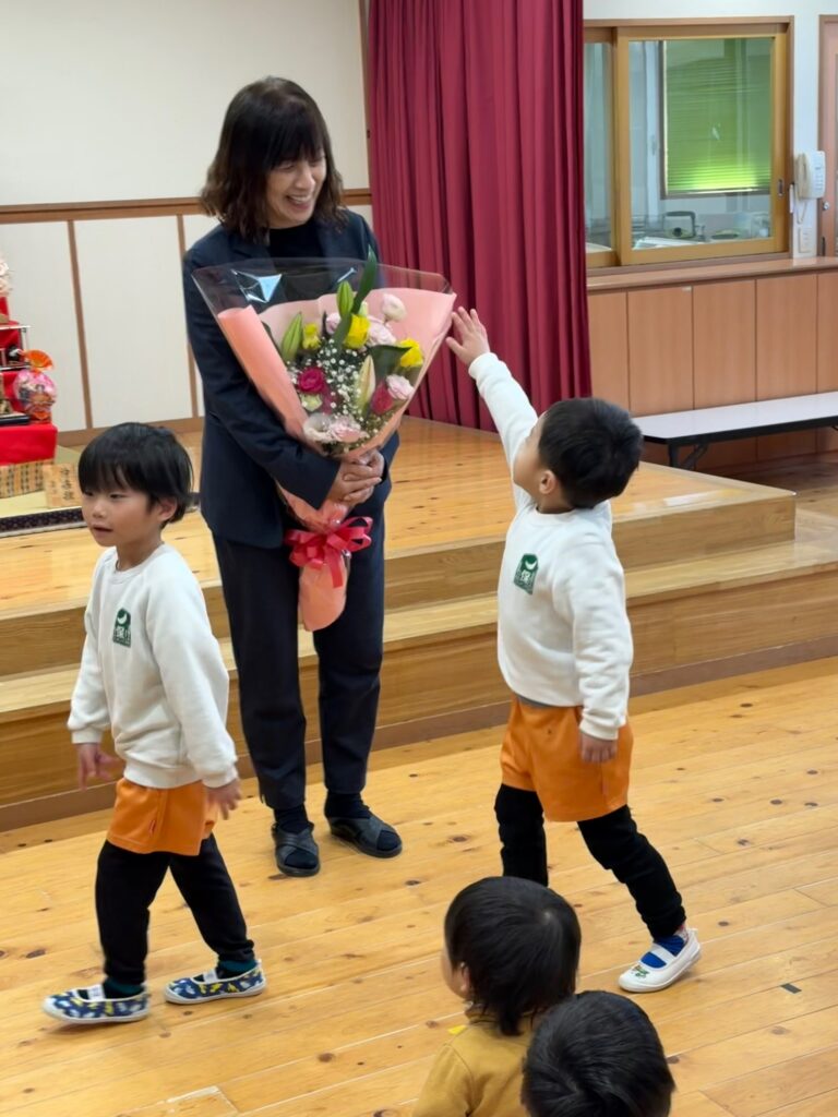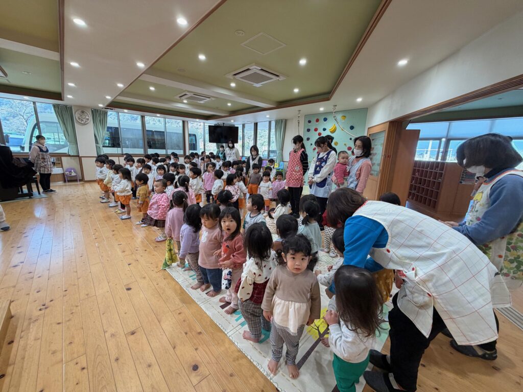 明日2月14日は社会福祉法人星穂乃会の創立記念日です。星穂乃会は丸8年を迎え9年目となります。子ども達の笑顔と元気な声を聞くことができ嬉しく思います。これからも、どうぞよろしくお願いします。 月読保育園の園歌を元気いっぱい歌いました。 園長先生にタッチしたり、「おめでとう」と言ったり気持ちを伝えました。 2025 2025年度一覧② 創立記念日のお祝い